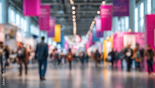 hall, indoor, blurred, people, many, walking, aisle, exhibit, convention, commerce, bright, banner, colourful, display, light, large, crowd, motion, movement, business, event, activity, expo, show, exhibition, trade, floor, architecture, ceiling, space, visitor, daylight, poster, pink, yellow, orange, grey, concrete, background, blur, outdoors, hallway, design, shopping, commercial, corporate, public