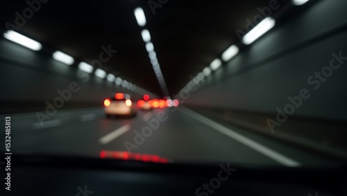 Blurred nighttime traffic in a highway tunnel