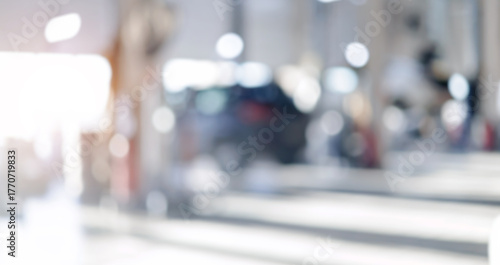 Blurred no focus background repair car service, automotive garage shop with sunlight