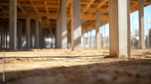 construction, site, concrete, pillar, raw, earth, floor, indoor, perspective, blurred, building, structure, architecture, industry, developing, material, unfinished, framework, urban, worksite, scaffolding, installation, excavation, environment, interior, labor, progress, renovation, design, space, foundation, support, modern, project, machinery, equipment, safety, hard hat, labourer, contractor, temporary, civil, landscape, form, column, terrain, workspace