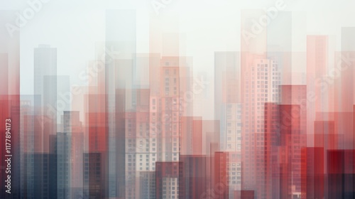 Blurred skyscrapers with soft color gradients of pink and peach creating a light atmosphere