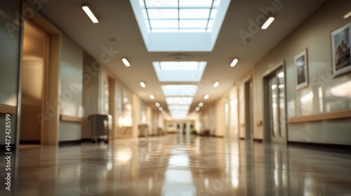 Blurred View of Spacious Hospital Corridor with Natural Light