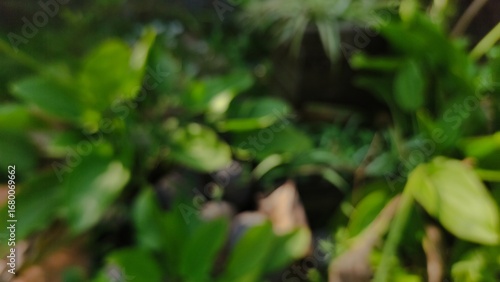 Blurry photo of green leaves and natural plants, creating a soft abstract background with fresh tones. This image is perfect for eco-friendly themes, nature concepts, design projects, and stock collec