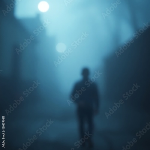man, walking, fog, night, alley, city, street, dark, mysterious, alone, silhouette, blurry, blue, light, mood, atmosphere, shadow, urban, gloomy, cold, winter, abstract, background, texture, image, photo, art, graphic, design, scene, view, perspective, concept, feeling, emotion, person, human, figure, shape, form, space, environment, landscape