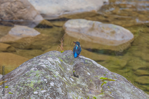 nature, rock, animal, wildlife, stone, rock, blue, bird, wild, kingfisher, birding, riverbed, river, forest