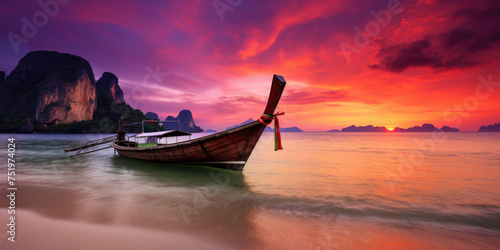 boat, sea, beach, water, ocean, siam, sky, travel, fishing, island, landscape, sand, summer, tropical, nature, sunset, coast, ship, bay, asia, phuket, sun, vacation, tour tourism