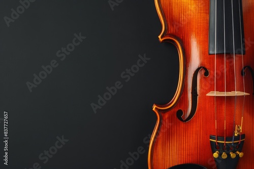 Body of a violin with black gradient background isolated. Horizontal composition.