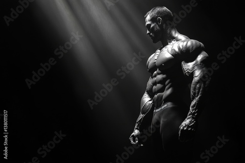 bodybuilder, muscle, lighting, strength, physique, black, background, definition, confidence, physical exercise, fitness, silhouette, pose, power, training, athletic, male, dark, portrait, determination, exercise, health, sculpted, tone, passionate, artistry, showcase, contrast, visual, dramatic, representation, studio, performance, form, sculpting, competition, display, intensity, admiration, inspiration, aesthetic, gym