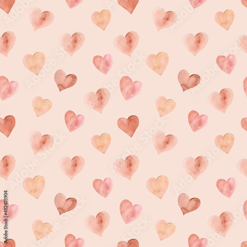 Boho hearts watercolor seamless pattern. Valentine's day background. Love digital paper.