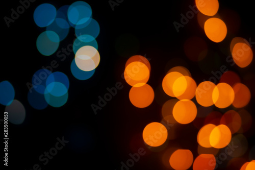 Bokeh abstract texture. Colorful. Defocused background.Bright lights on dark background.