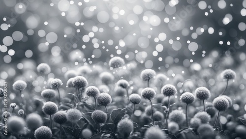 Bokeh background with gray and white tones featuring soft floral elements creating a dreamy natural atmosphere.