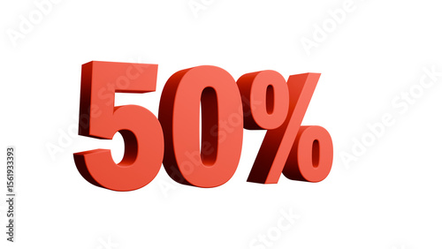 Bold 50% percentage text in 3D style. Perfect for discounts, sales, promotions, banners, marketing ads, and business presentations. Modern design for web, print, or social media use.