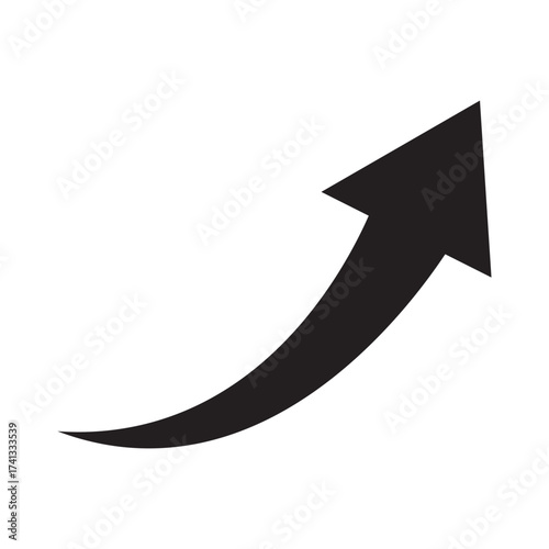Bold black upward curved arrow on white background, symbolizing growth, progress, or direction. Simple vector style, ideal for presentations, web graphics, business concepts, or marketing.