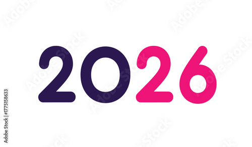 2026, new year, year, number, graphic, illustration, date, future, celebration, design, modern, bold, numeral, digit, colours, contrast, purple, pink, white background, clean, bright, simple, minimalist, typography, creative, concept, idea, announcement, event, time, calendar, planning, goal, opportunity, forward, progress, countdown, holiday, seasonal, greeting, template, visual, element, symbol