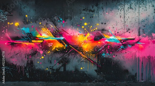 Bold Neon Graffiti Art with Vibrant Splashes on Dark Canvas