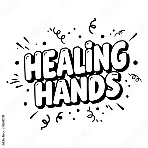 Bold, stylized lettering "Healing Hands" in a comic book/pop art style, perfect for motivational or healthcare advertising, editorial, or inspirational designs.