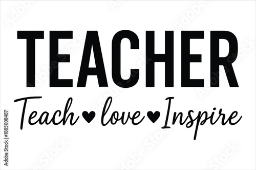 Bold typography displaying the word teacher with inspirational message below