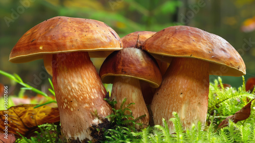 boletus among moss in autumn forest, fall, mushrooms, trees, wood, nature, beauty, macro photo, plant, beauty, season, orange, brown, ecology, eco, background, wallpaper
