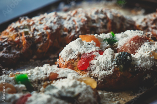 Bolo Rei, Bolo-rei, or Kings King Cake, a traditional Portuguese cake, Portugal, a staple dessert in any Portuguese home during the holidays