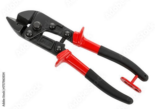 cutter, bolt, tool, equipment, construction, metal, steel, handle, hardware, industry, repair, plier, work, strength, black, red, manual, clamp, feature, jaw, designed, chain, thick, rod, symbol, precision, isolated