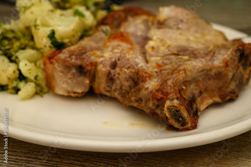 pork meat, chop, cooked, cauliflower, potato, herb, side, complete, meal, food, photo, protein, vegetable, dinner, plate, meat, dish, homemade, comfort, rustic, cookery, presentation, vegetable, accompaniment, composition, cutlet, idea, styling, receipe, steak, hearty, family, balanced, side, option, garnish, preparation, serving