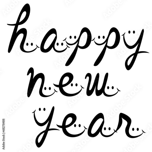 happy new year, greeting, wish, luck, new year, letter, decorative, happy, design, fun, smile, character, concept, sunny, english