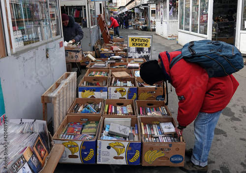 price, bazaar, business, city, ukraine, kiev, 2021, year, market, expensive, buy, pensioner, buyer, good, wholesale, retail, people, many, cheap, book, mag, edition, newspaper, old, unnecessary, dirty, trader, shelf, row, mountain, stack, heap, stall, on, ground, snow, sale, discard, read, love, wisdom, destruction, spoiled, bad, antique, collector