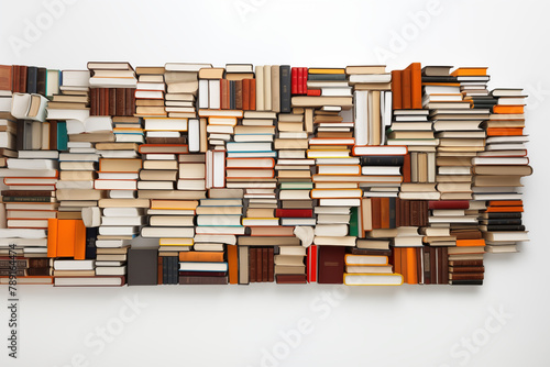 Books on white background. Topics related to books. Sale of books. Library. Book news. Book fair. Image of books for graphic designers. Isolated books. Live stores. Top view.