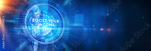 Boost Your Income financial motivation phrase and money. Business, technology concept.