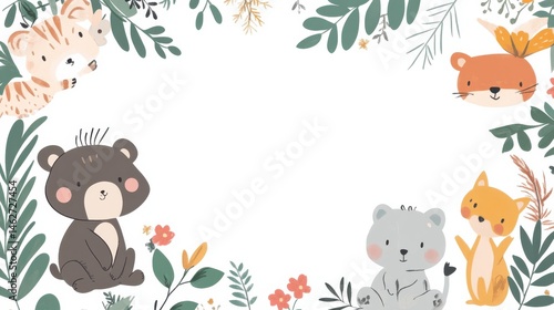 border, template, design, cute, animal, illustration, header, decorative, frame, colourful, whimsical, playful, banner, graphic design, invitation, baby shower, festive, vibrant, charming, delightful, artistic, hand-drawn, creative, fauna, wildlife, copy space, adorable, sweet, lovely, pretty, art, nature, fantasy, enchanting, cuddly