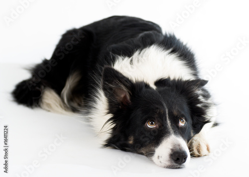 dog, studio, collie, breed, laying, shy, white background, isolated, fur, cute, animal, portrait, best friend, pet, puppy, 1, single, loneliness, alone