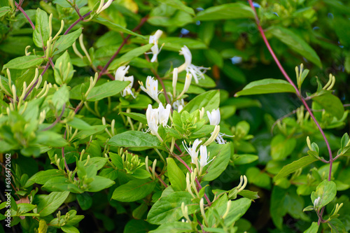 Botanical collection of medicinal and climbing plants, Jasminum officinale, jasmine plant in blossom
