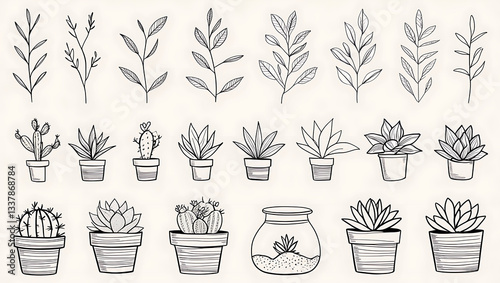 hand-drawn, minimalism, black-and-white, plant, foliage, succulent, cactus, potted plants, flora, modern, greenery, elegance, vignetting, plant, pot, flower, leaf, nature, tree, isolated, growth, flowerpot, houseplant, decoration, gardening, botany, garden, vector, potted, growing, illustration, house, home, interior, cactus, spring, blossom