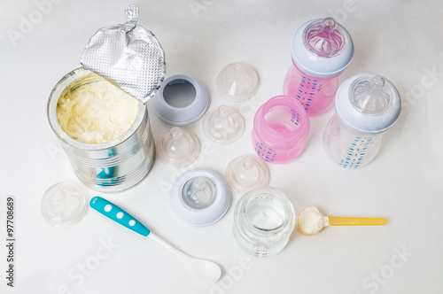 milk, baby, formula, bottle, teat, powder, dairy, spoon, dried, infant, scoop, healthy, health, newborn, prepare, preparing, preparation, white, isolated, food, drink, beverage, care, childhood, plastic, eat, motherhood, accessory, feeding, can, utility