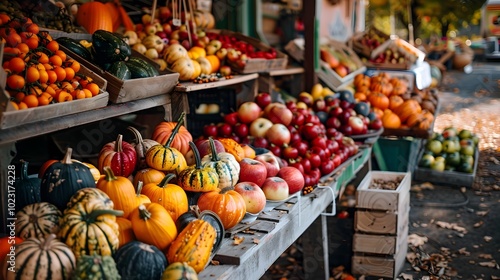 Bountiful Autumn Harvest at a Quaint Farmers Market Stall