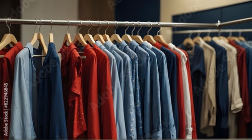 boutique fashion racks Clothes store clothing shop shopping shirt rack background retail apparel style garment dress textile woman blue red hanger business market mall model closet hanging