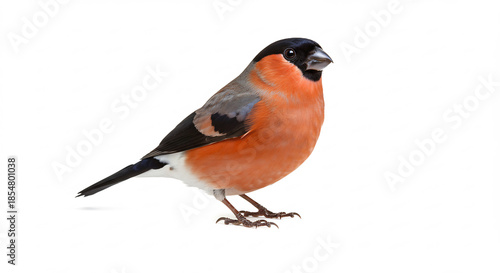 Bouvreuil pivoine m�le �l�gant isol� sur fond blanc pur captur� avec une nettet� impeccable en studio. AI Generated