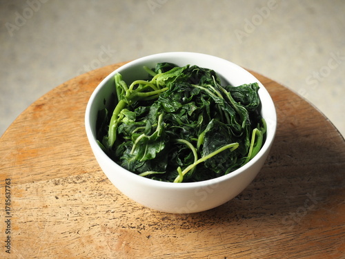 bowl of boiled spinach