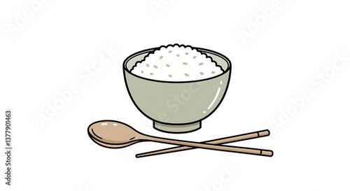 rice, bowl, spoon, chopstick, food, meal, grain, cookery, eating, kitchen, utensil, dinner, lunch, staple, healthy, cooked, white, asian, dish, serving, portion, simple, delicious, tasty, vegetarian, carbohydrate