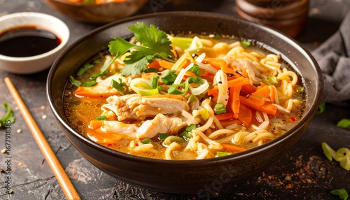 ramen, noodle, chicken, soup, vegetable, spicey, asian, broth, bowl, food, dish, delicious, epicure, eatery, healthy, dinner, lunch, cookery, korean, japanese, flavorful, aromatic, hot, fresh, protein, alimentary, comfort, meal, image
