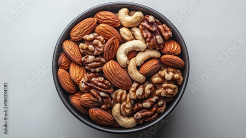 Bowl of mixed nuts almonds, cashews, walnuts.