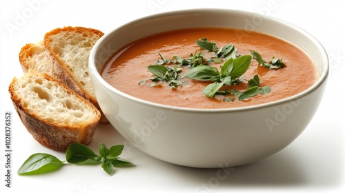 food, soup, tomatoes, basil, bread, cookery, lunch, dinner, healthy, vegetable, meal, delicious, tasty, fresh, organic, white, bowl, green, red, plate, sauce, dip, garnish, rustic, simple, comfort, homemade, traditional, epicure, eatery, vegan, vegetarian, spicey, savoury, hot, warm, side dish, breakfast, brunch, cracker, snack, diet, natural, cook, culinary, chef