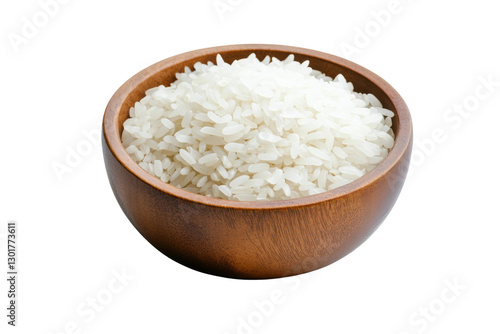 Bowl of uncooked white rice ready for cooking, cut out