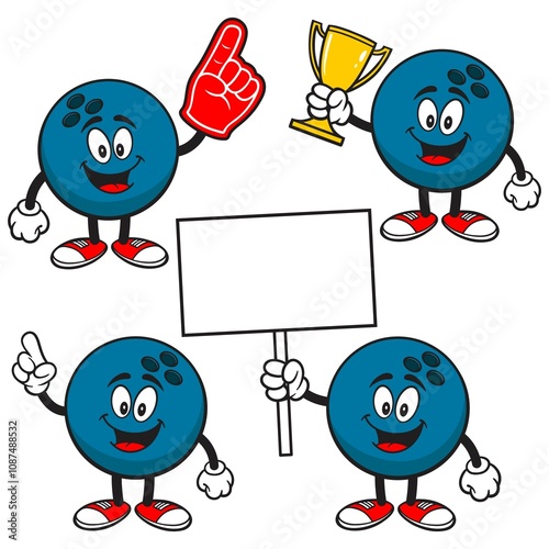Bowling Ball Character Set 01, Hand Drawn Vector illustration, Isolated On Transparent Background