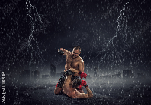 Box fighters trainning outdoor . Mixed media