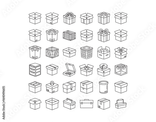 container, outline, signs, symbol, shipping, business, illustration, package, set, design, box, distribution, retail, cardboard, collection, service, gift, icon, line, vector, graphic, logistic, mail, merchandise, export, open, parcel, post, relocation, storage, truck, cargo, element, empty, industry, paper, transportation, concept, line art, object, product, store, template, bag, food, simple, thin, deliver, web