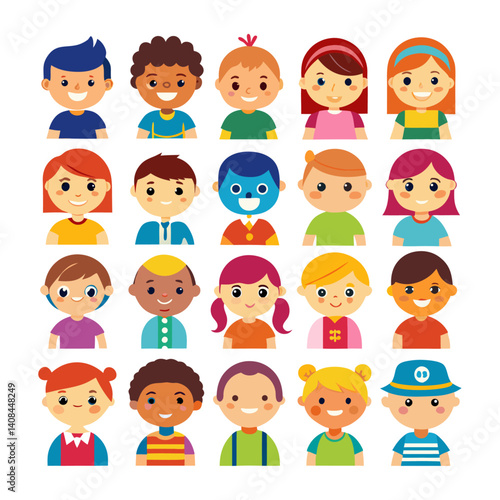 Boy and girl avatar Colorful icons set bundle vector design