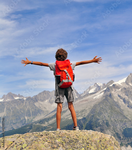 mountain, landscape, chamonix, mont blanc, france, boy, children, children, 1, male, person, adventure, back, backpack, silhouette, free, freedom, top, stone, brave, hiking, trekking, point, view, french, alps, alpine, peak, range, altitude, alpinism, sky, wild, scenic, beauty, snow, vale, tree, rock, cliff, hand, yes, can, happy