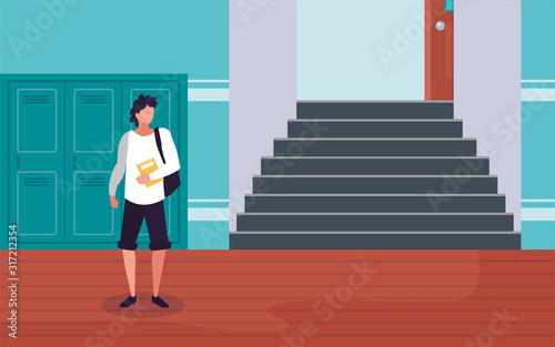 boy, student, avatar, bag, notebook, school, locker, door, vector, education, class, lesson, cognition, kindergartner, illustration, design, study, learning, primary, information, expression, youth, communication, equipment, commercial, element, object, interact, symbol, training