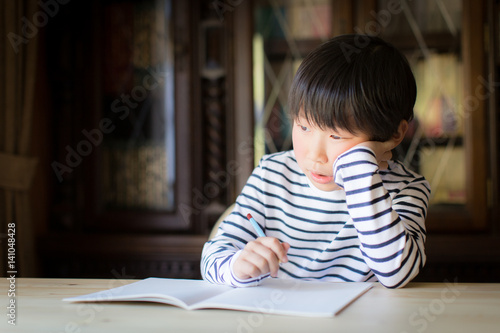 study, studying, boy, children, children, academic, student, thinking, thoughtful, learn, cute, education, home, homework, cognition, notebook, 1, crayons, class, people, person, little, portrait, school, sitting, white, work, writing, young, asian, japanese, background